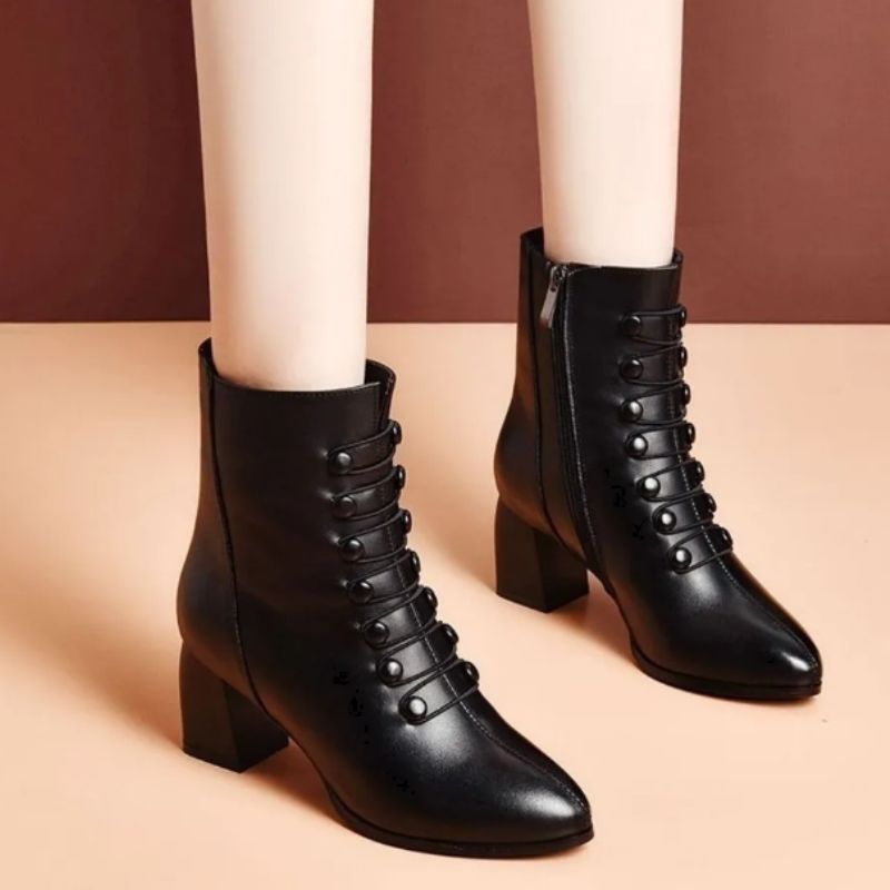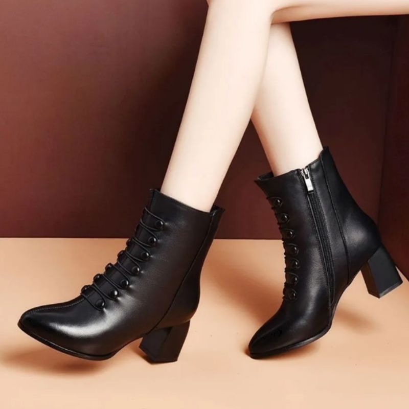 Bottines à Boutons PU Noir Steampunk pour une allure intemporelle