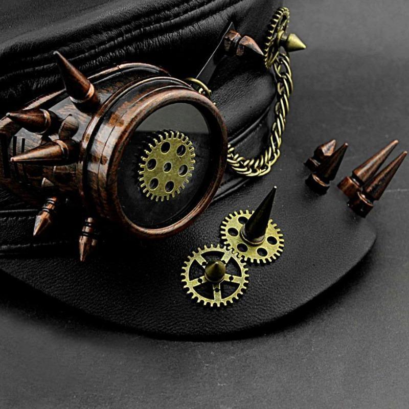 Les détails méticuleux tels que les engrenages et le monocle intégré en font un véritable chef-d’œuvre. Ce chapeau steampunk accentue votre look d’un charme mécanique et d’une esthétique industrielle, parfait pour enrichir votre ensemble steampunk avec une touche bien pensée.