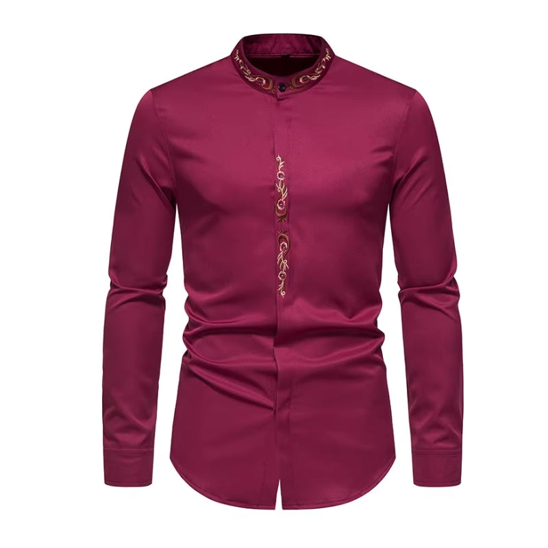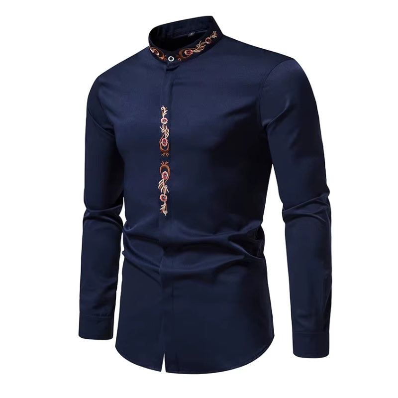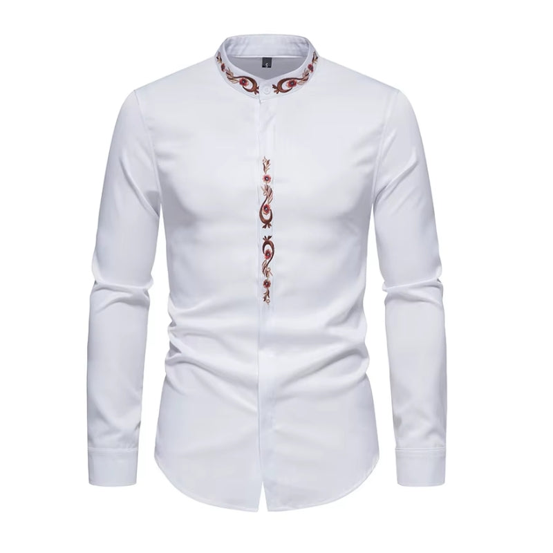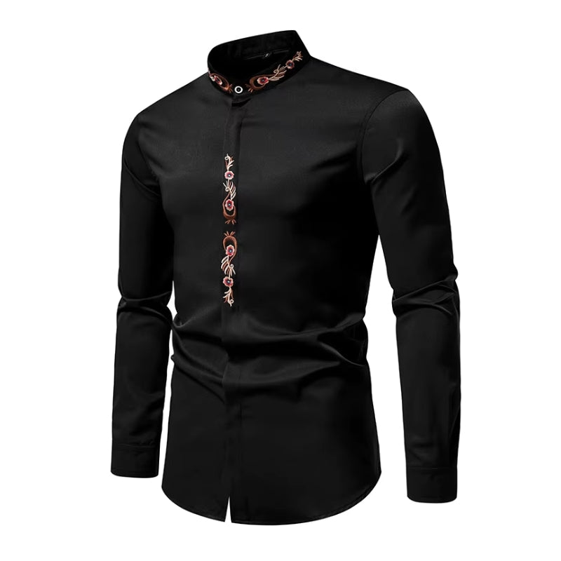 Un confort inégalé avec la Chemise à Col Mao Brodée