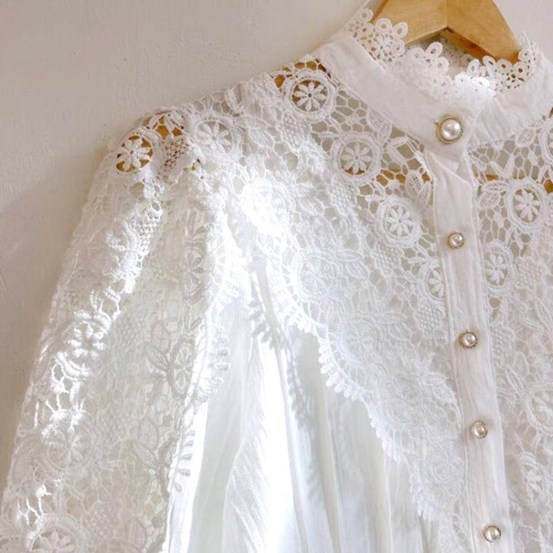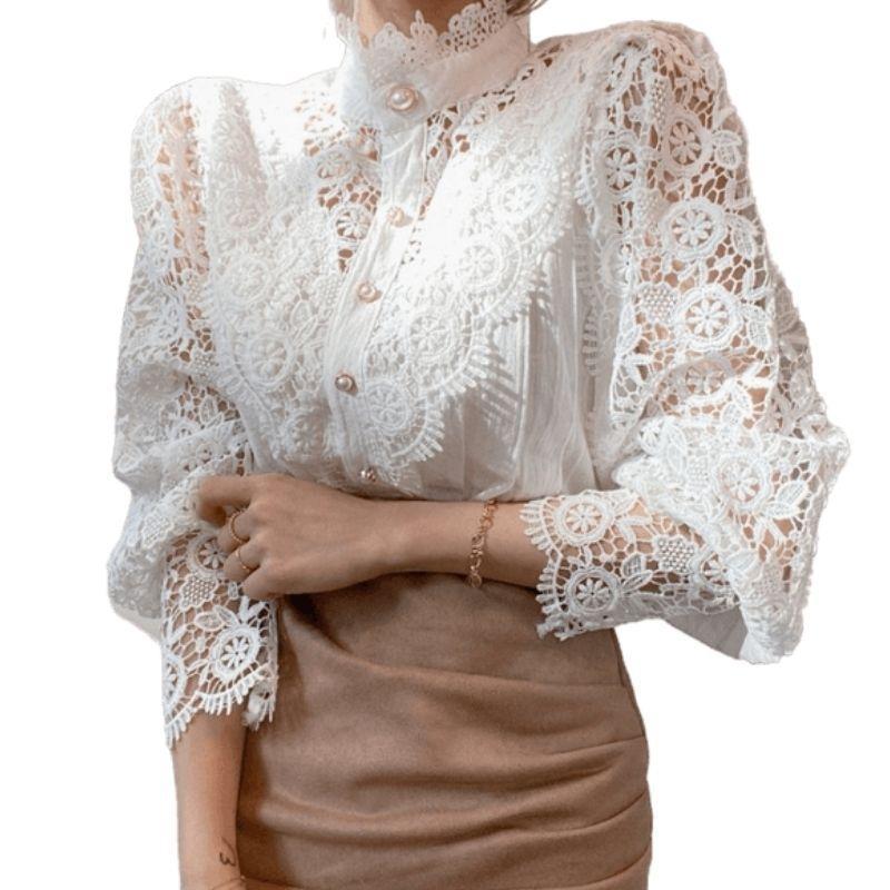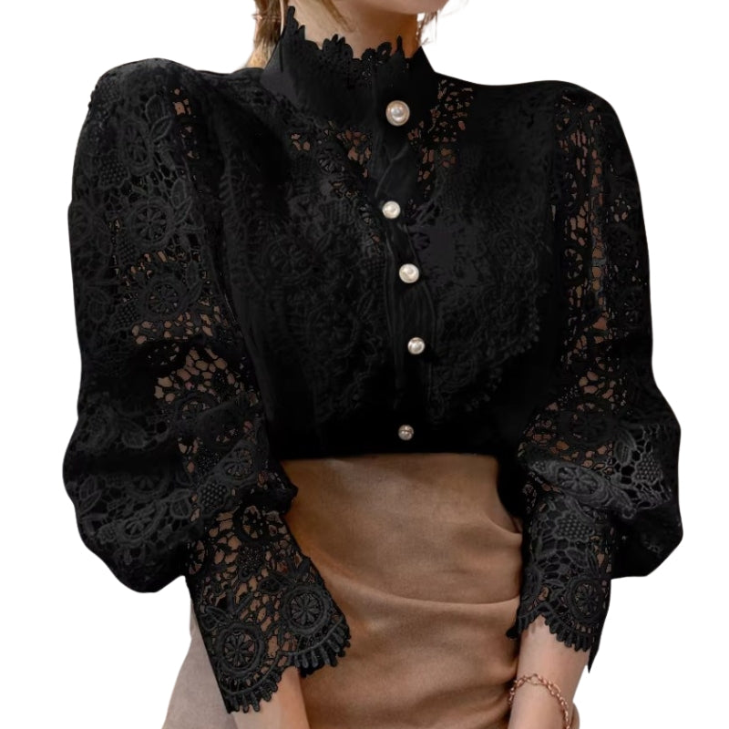 Élégance intemporelle avec le Chemisier Dentelle Col Victorien