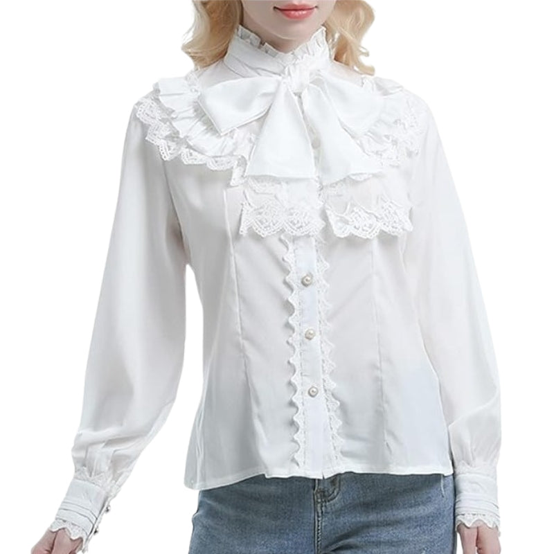 Conçu pour sublimer toute tenue, ce chemisier offre une silhouette raffinée avec son style victorien. Que ce soit pour un dîner élégant ou une promenade en ville, le Chemisier Victorien Blanc Steampunk complétera parfaitement votre look avec son col lavallière et sa dentelle exquise.