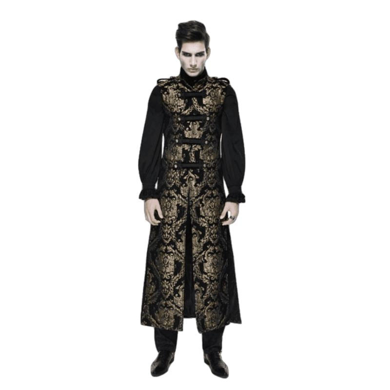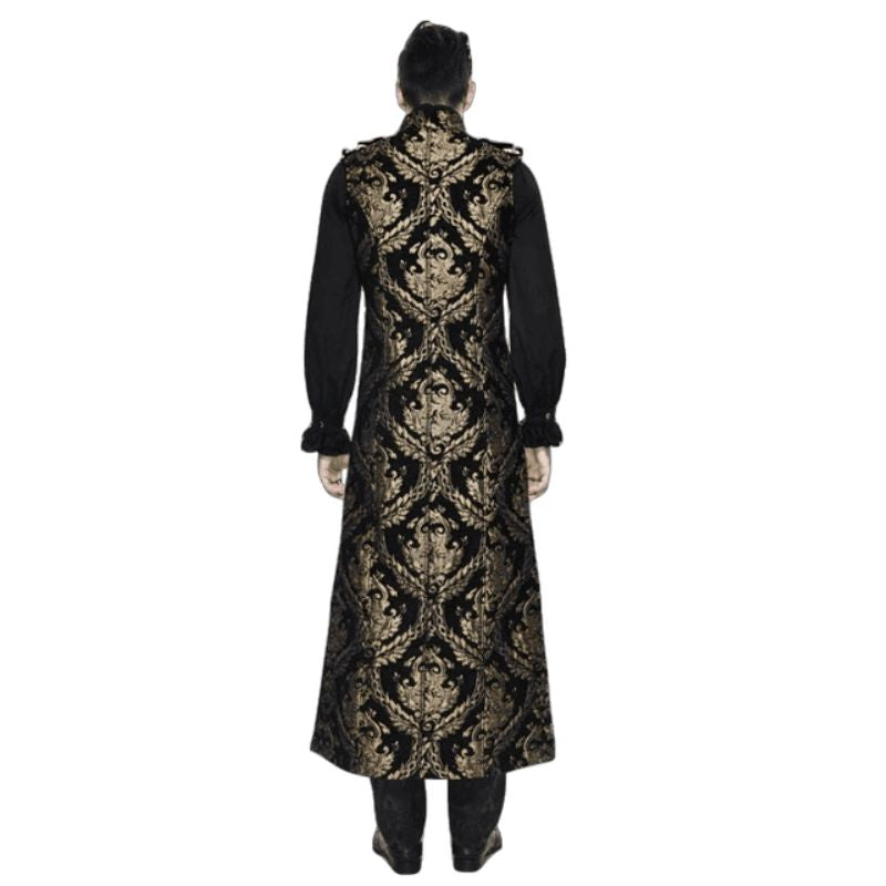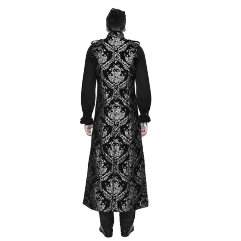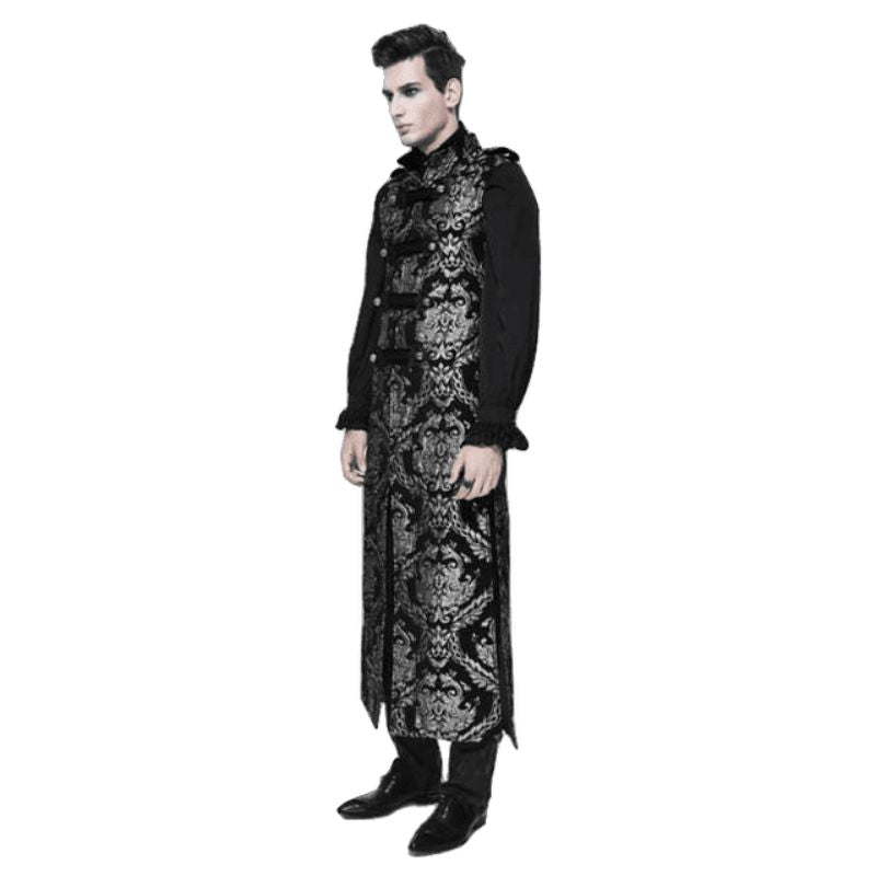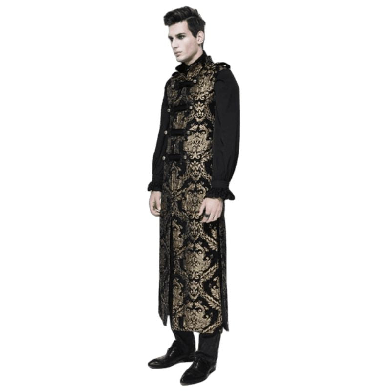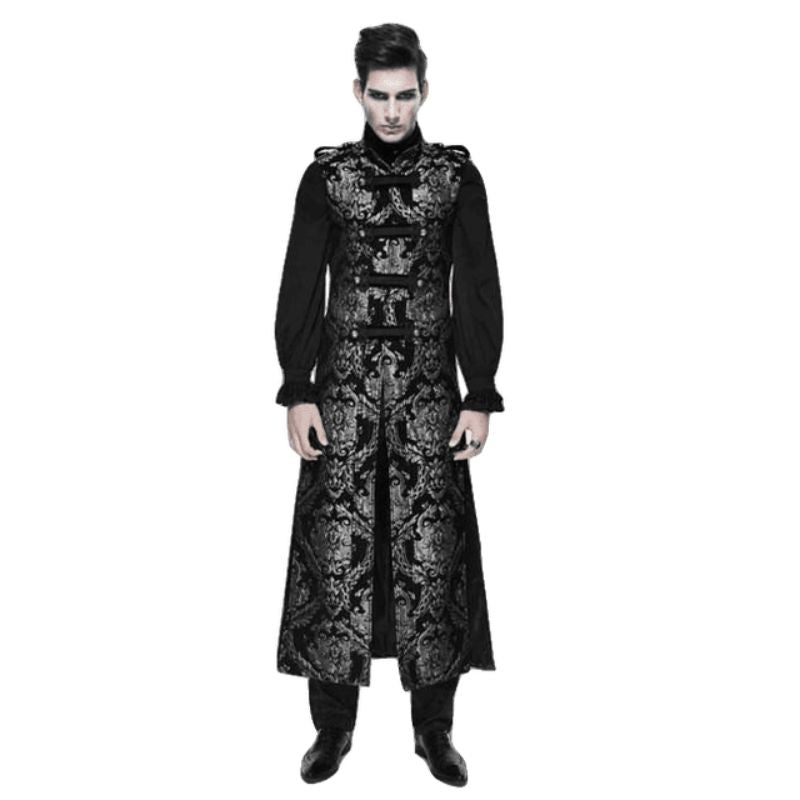 L’absence de manches de cette longue veste gothique apporte une liberté de mouvement tout en conservant une protection contre le froid grâce à sa longueur. Ce choix de vêtement se marie parfaitement avec des pantalons en cuir ou des chemises à jabot, augmentant ainsi votre confort et votre style.