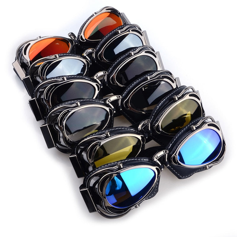 La SteamPunk Store vous propose des lunettes de soleil moto vintage qui incarnent le mariage parfait du passé et du futur. Ces lunettes unisexes se déclinent en plusieurs couleurs et s’harmonisent avec tous vos ensembles steampunk pour un look incomparable.