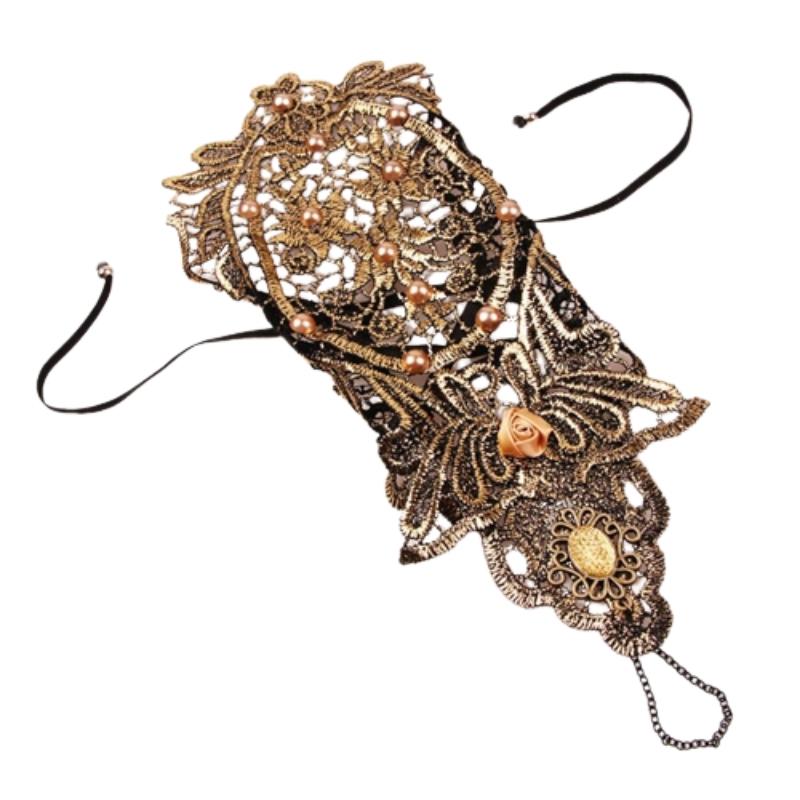 La manchette n’est pas seulement un accessoire de mode, elle est une déclaration d’intention. En mêlant des éléments de dentelle et de pierres ornementales, elle incarne le mélange de styles qui caractérise si bien l’esprit libre et visionnaire des femmes Steampunk.