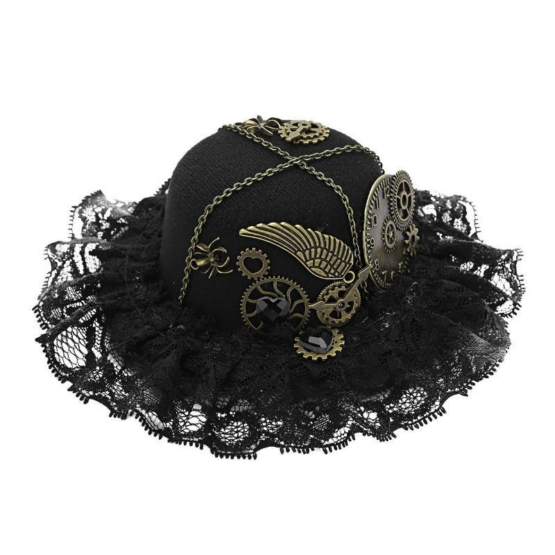 Idéal pour ajouter une note de sophistication à votre tenue, ce mini chapeau est parfait pour les occasions spéciales, évènements à thème ou tout simplement pour magnifier votre style quotidien. Sa dentelle délicate et ses ornements en bronze apportent une élégance subtile qui ne manquera pas de séduire les passionnés de mode rétro et alternative.