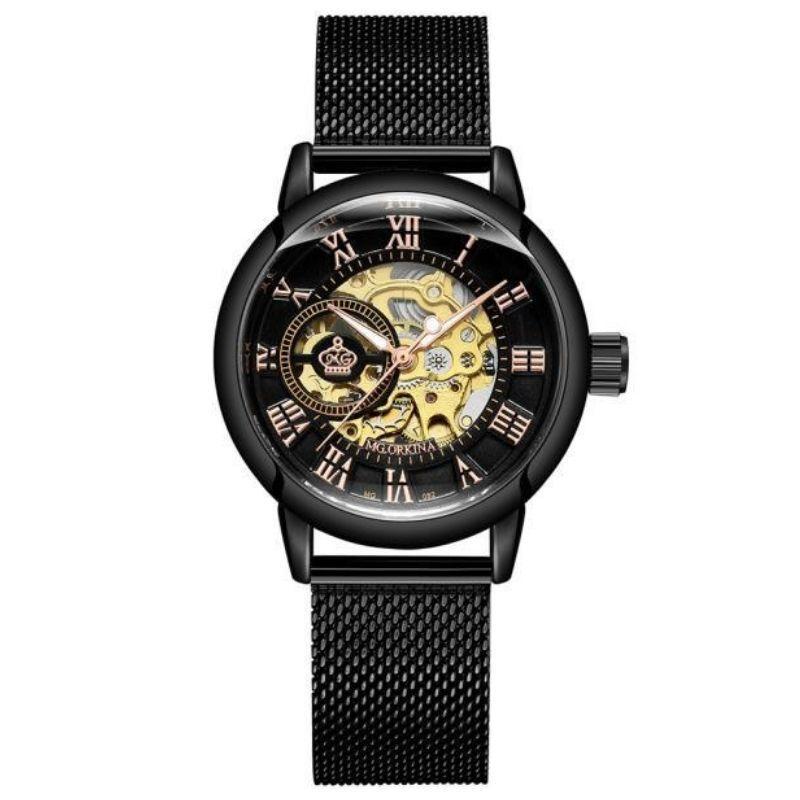 La Montre Squelette Femme Automatique marie harmonieusement le vintage et le contemporain grâce à son design inspiré des premières montres squelettes du XVIIIe siècle. Ornerez votre tenue d’une touche de distinction sans pareil, alliant histoire et innovation pour sublimer votre quotidien.