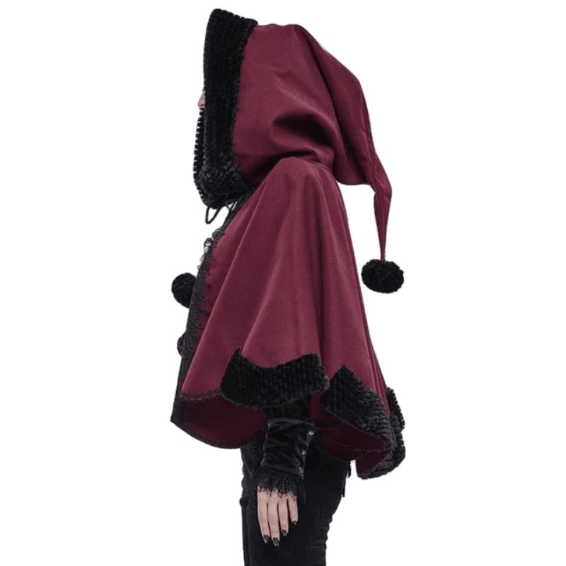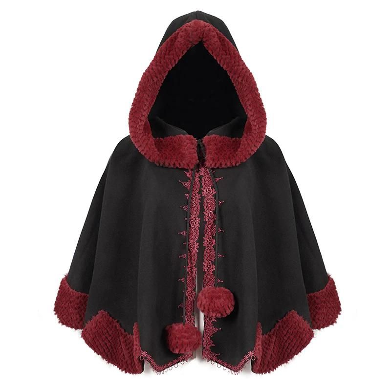 Avec sa coupe courte sans manches et sa fausse fourrure sophistiquée, cette cape est un hommage aux styles du passé tout en restant résolument moderne. Que vous choisissiez la variante bicolore à dominante noire ou rouge, elle saura compléter vos autres accessoires victoriennes avec un charme inégalé.