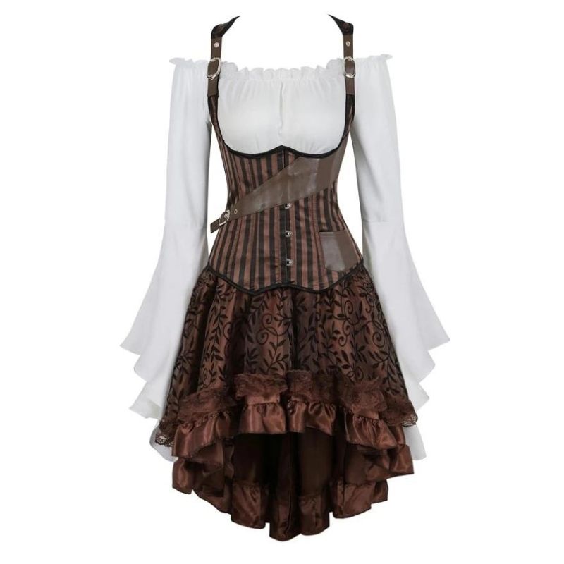 Avec ses manches longues et sa jupe fluide, la robe corset pirate assure un confort inégalé tout en dégageant une sensualité palpable. Ce vêtement est idéal pour les femmes qui cherchent à combiner confort et style sophistiqué sans compromettre leur allure captivante.