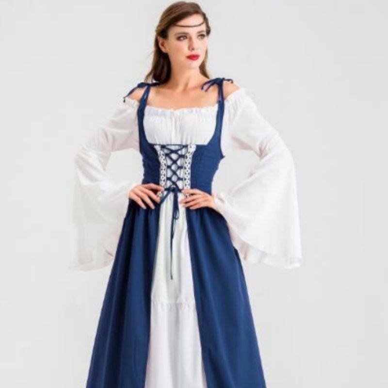 La Robe Médiévale Victorienne se distingue par son bustier à lacets et son décolleté séducteur qui accentue gracieusement la silhouette féminine. Chaque détail, des manches évasées aux bretelles délicatement nouées, est pensé pour offrir une expérience de port exceptionnellement confortable tout en étant esthétiquement plaisante. Cette conception s’orne de détails délicats reflétant une authenticité historique captivante.