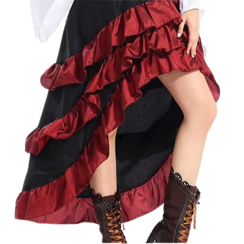 Parfaite pour les soirées costumées ou les conventions, la Robe Steampunk Cosplay Pirate s’adapte à toutes les occasions. Sa jupe asymétrique et ses volants lui confèrent une grâce particulière, tandis que la chemise ample ajoute une touche de sophistication. Porter cette robe, c’est porter un morceau d’histoire fantastique.