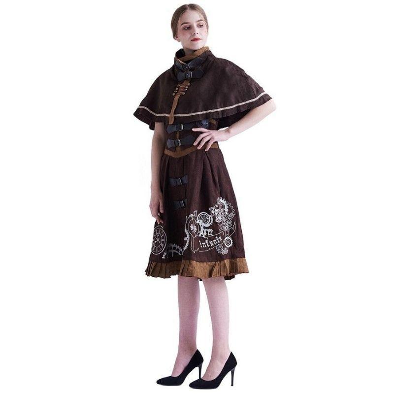 La robe style victorien femme de notre collection est un clin d’œil appuyé à l’univers Steampunk, mélangeant subtilement l’ancien et le nouveau. Inspirée des récits empreints de vapeur et de mécanique, elle invite à l’évasion et à la redécouverte d’une époque où l’innovation côtoyait la tradition avec fantaisie.