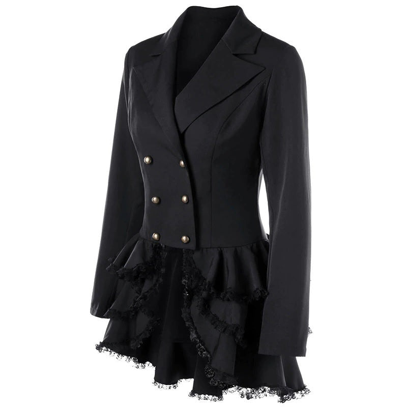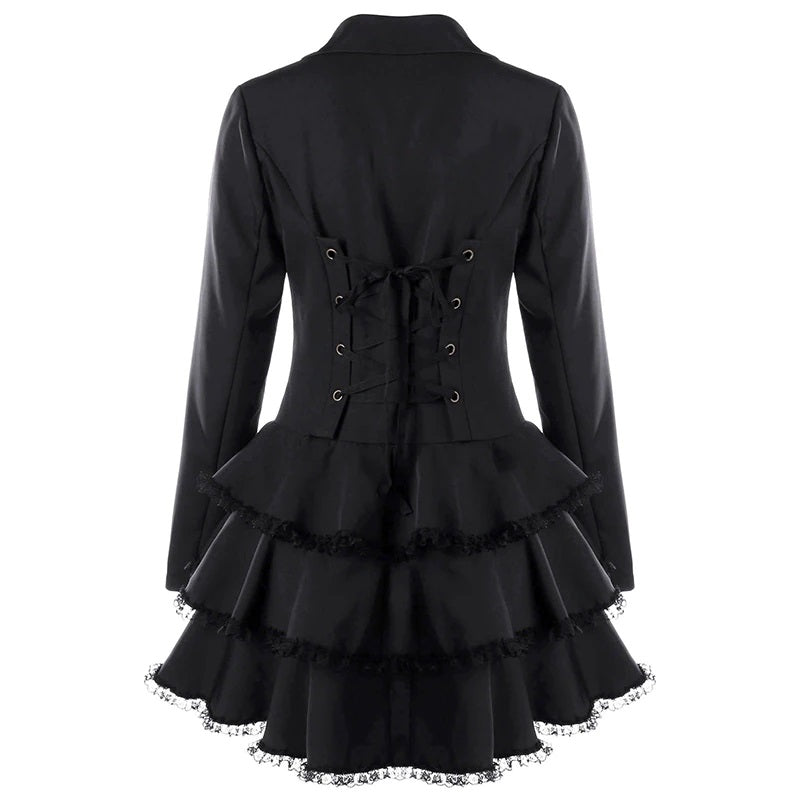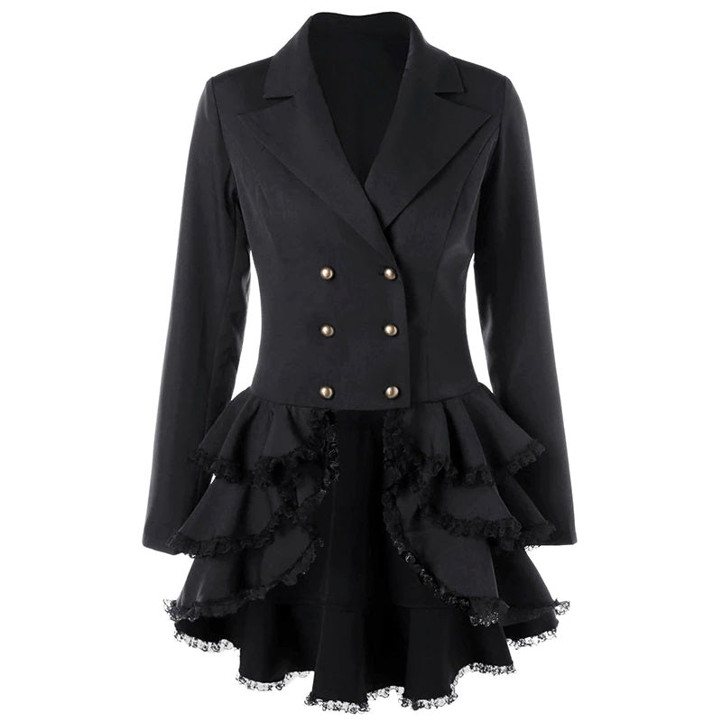 Avec sa coupe asymétrique raffinée et son choix de couleur noir profond, cette veste redingote s’impose comme un incontournable pour celles qui souhaitent adopter un look steampunk authentique. Son style intemporel met en exergue votre goût pour les vêtements classiques et chic.